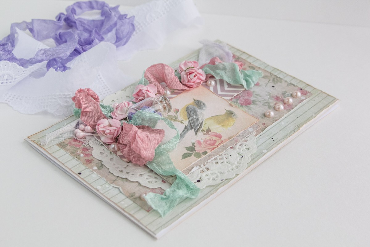 Последняя открыточка по СП "Сказки цветочных фей". Очень рада что смогла сделать открыточки по всем этапам )) т.к. использовала только те материалы, которые уже были в наличии. Новых пока не покупаю. ОЭ были рафия/сизаль/марля и бутылочка. У меня марля и бутылочка.
